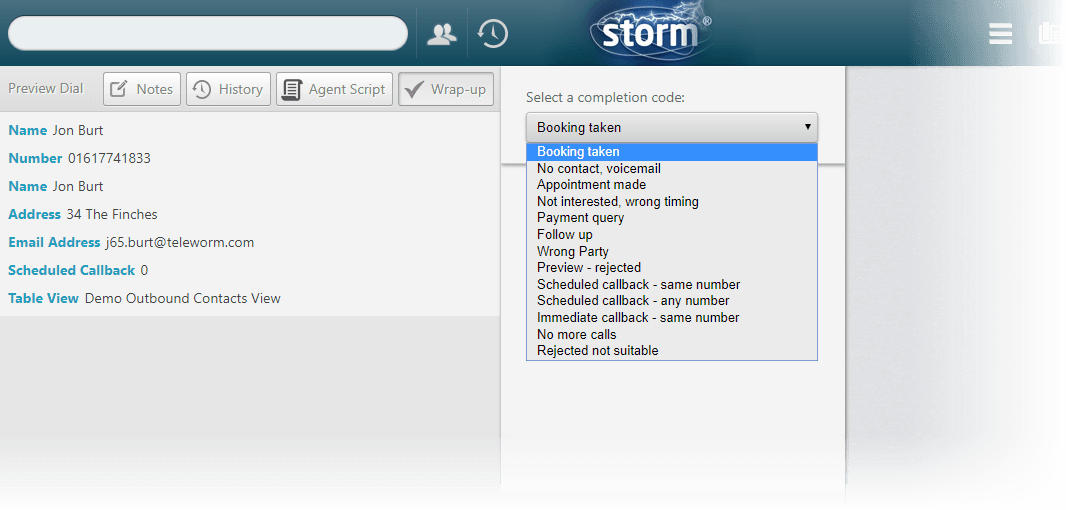 Your system administrator may have provided completion codes to support immediate and/or scheduled callbacks during a campaign. These completion codes are also configured so that the storm will assign the callback to you, or that the callback is assigned to any available agent in the agent group.